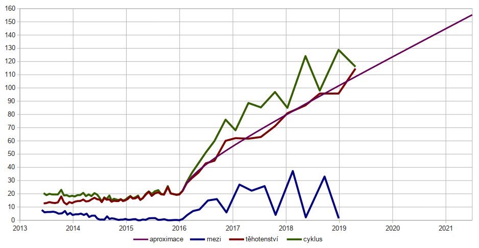 Už mám zapsaných dost dat a dalo by se z nich vypočítat, jak se může délka do budoucna vyvíjet a k jaké hodnotě případně konverguje.