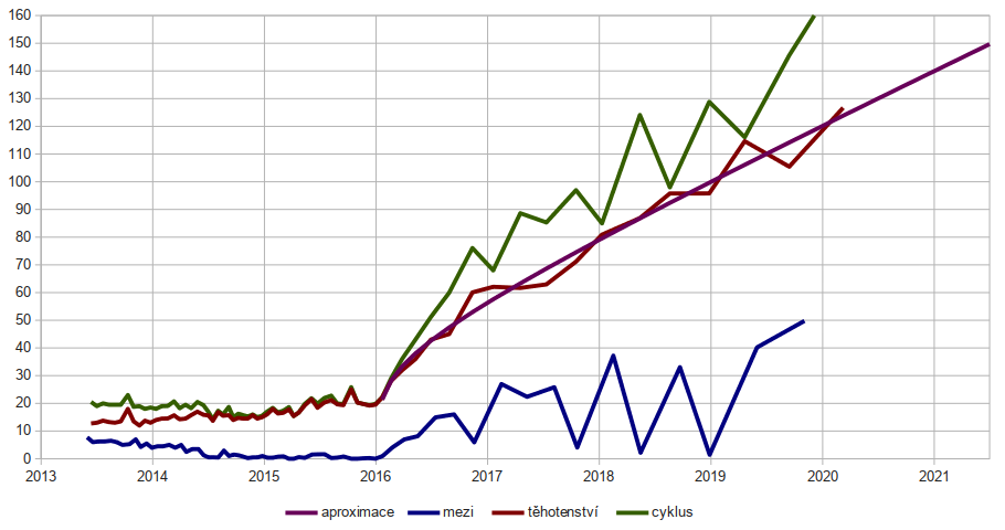 honzam píše:Od minulého grafu jsem absolvoval dva porody s délkou březosti 105 a 126 dní. První proběhl už v září a druhý teď na MDŽ