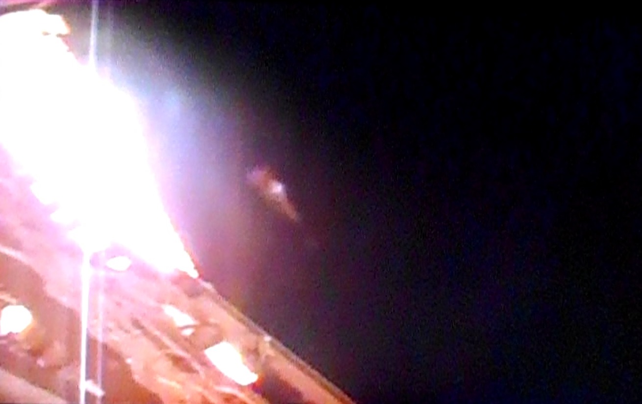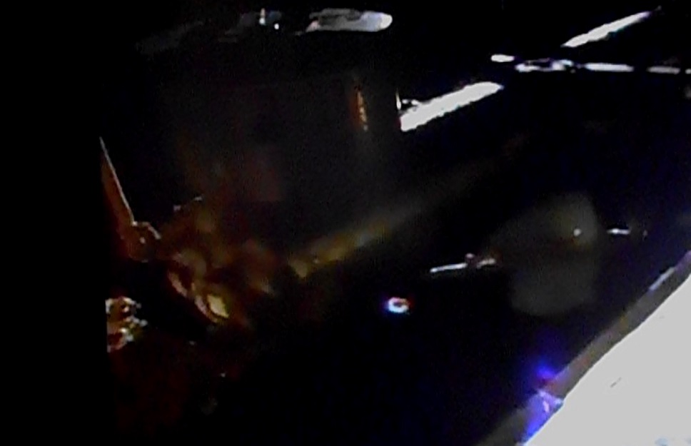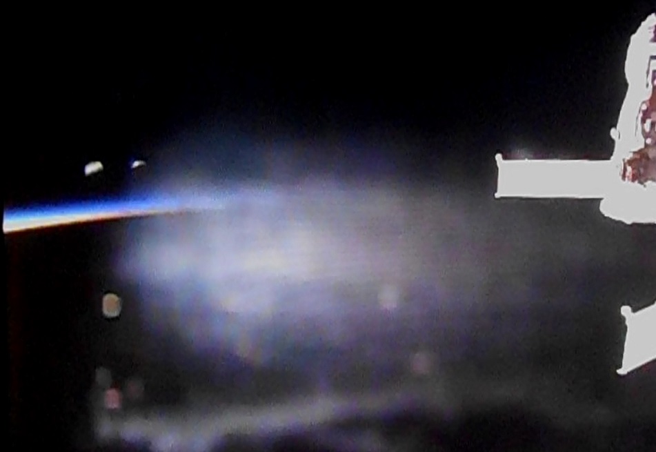 Kamera na stanici začala najednou sledovat jakýsi objekt........a pak se tam vynořily ty americké koblihy....mám to jen na videu, tak aspoň něco z něho okopíruji...