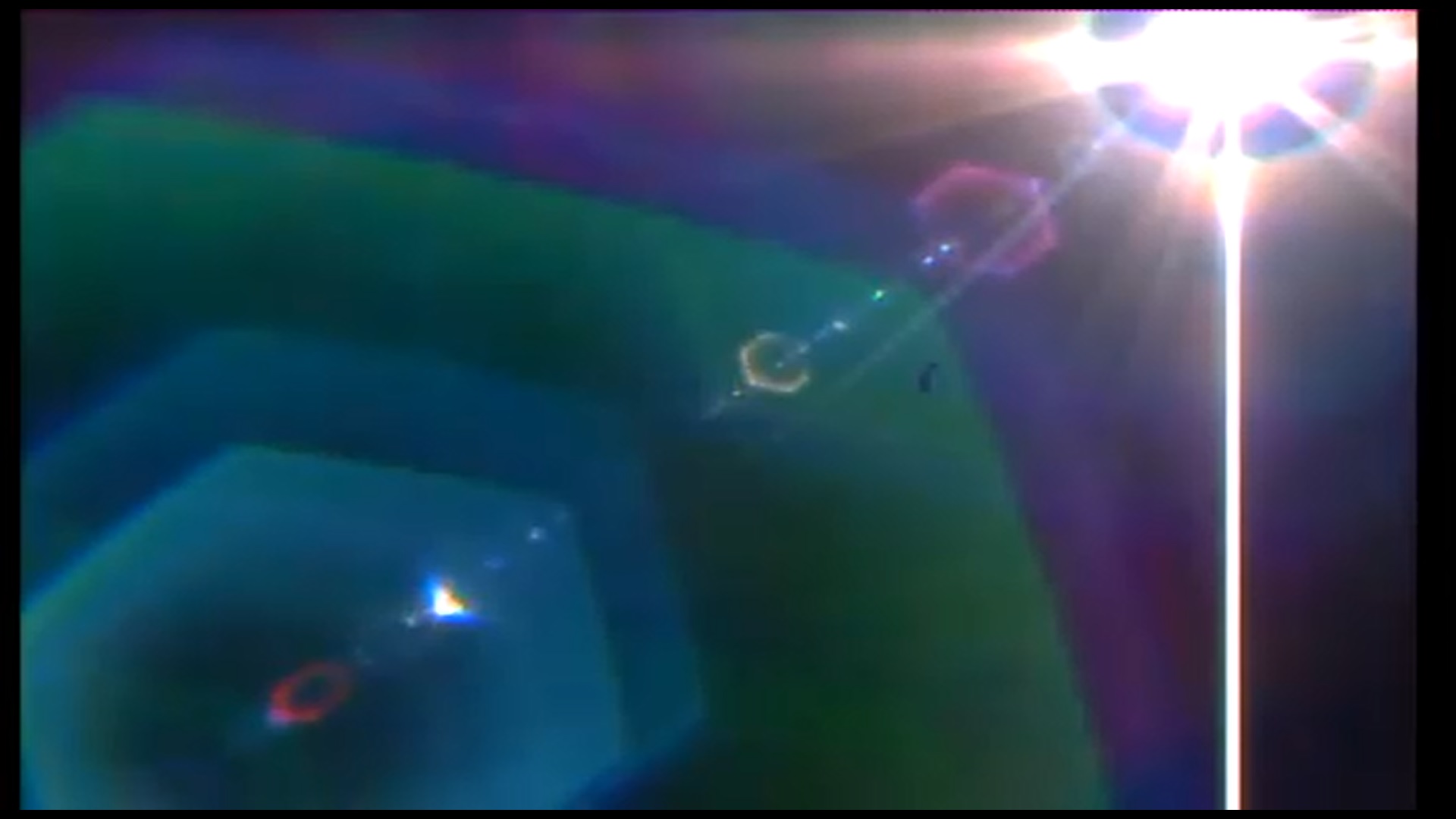 This appeared on camera at the ISS and stayed for 7 minutes. I thought it's only lens flare, forget it, but certain things were happening as it progressed. Lights appearing later on and as you can see flashes at the beginning of the piece near the second item as it appeared.