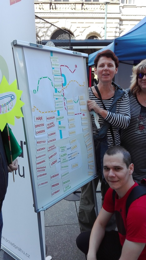 čímž jsme se na schodech Národního divadla stali terčem pozornosti všech kolemjdoucích, včetně policejní hlídky