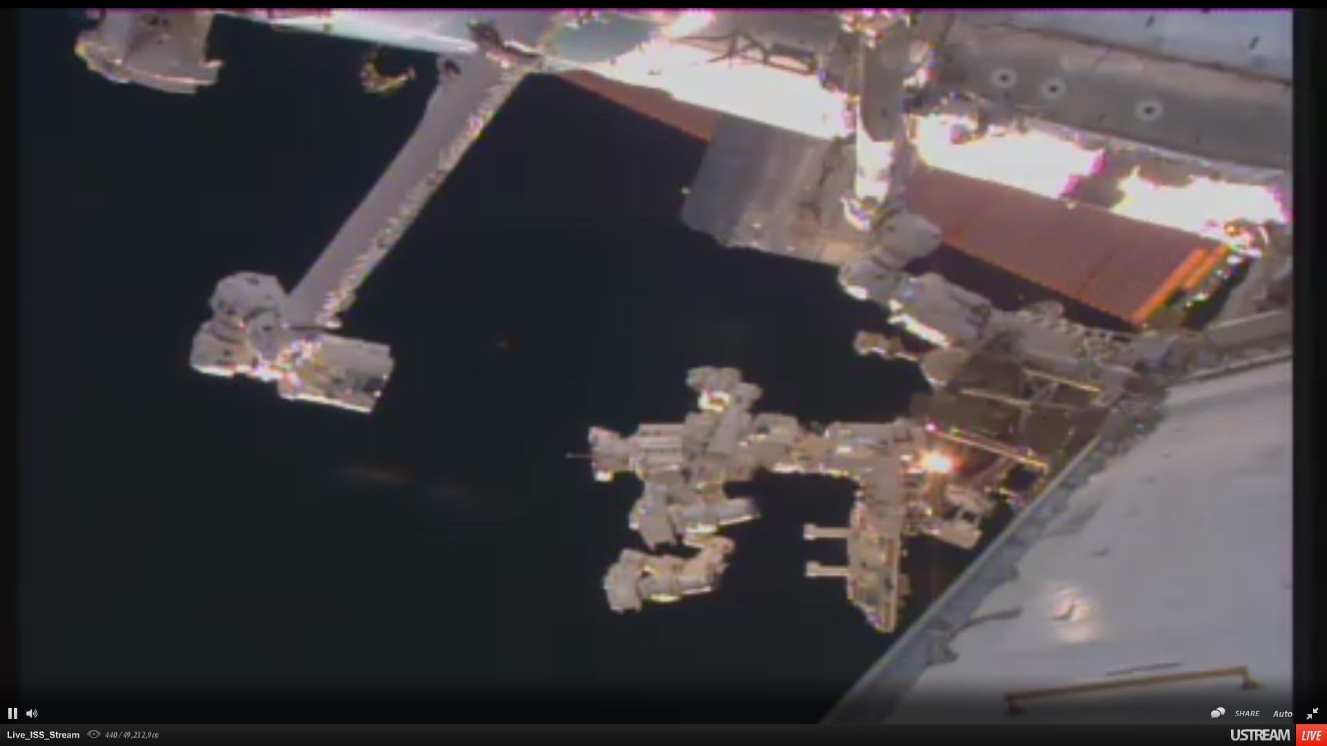 Letos...orbitální stanice...dlouhé hodiny se v blízkosti stanice zdržuje nějaký ten obláček mlhy. a pak se najednou začínají otřásat panely stanice, včetně kamery, všechno vibruje.....